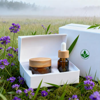 Bernsteinfarbenes Glas Kosmetik-Hautpflege-Glas 30g 50g Bambusdeckel mit 30ml Öl-Tropfer Luxuriöse Geschenkverpackung Kundenspezifisches OEM